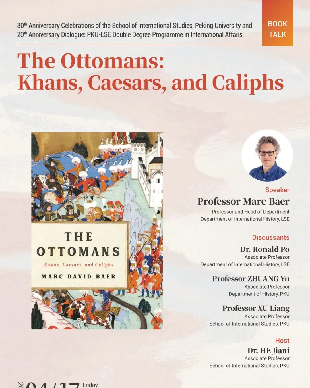Time: April 17, 2026, 14:00-15:30Venue: B218, Faculty Lounge, School of International StudiesSpeaker: Marc BaerAbout the SpeakerMarc David Baer is a professor and Head of Department of International History at the London School of Economics and Political Scien...