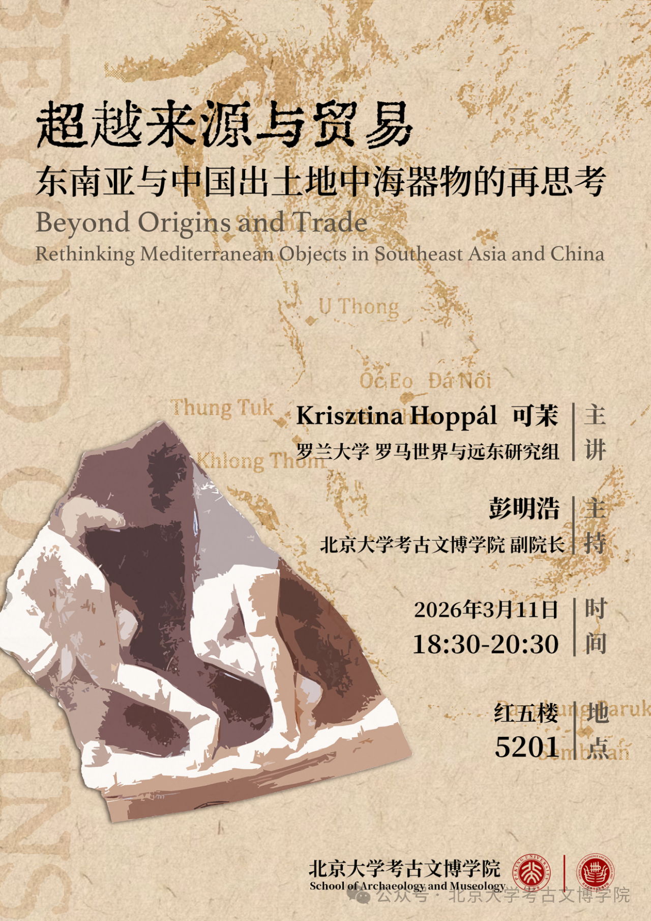 Abstract: Concomitant with the intensification of archaeological research in Southeast Asia and China, an increasing number of objects identified as being of Mediterranean origin have attracted growing scholarly attention. These artefacts have traditionally been interpreted primarily as indicators of long-distance trade or as exotic luxury items. However, their social and cultural contexts have often been overlooked or oversimplified.