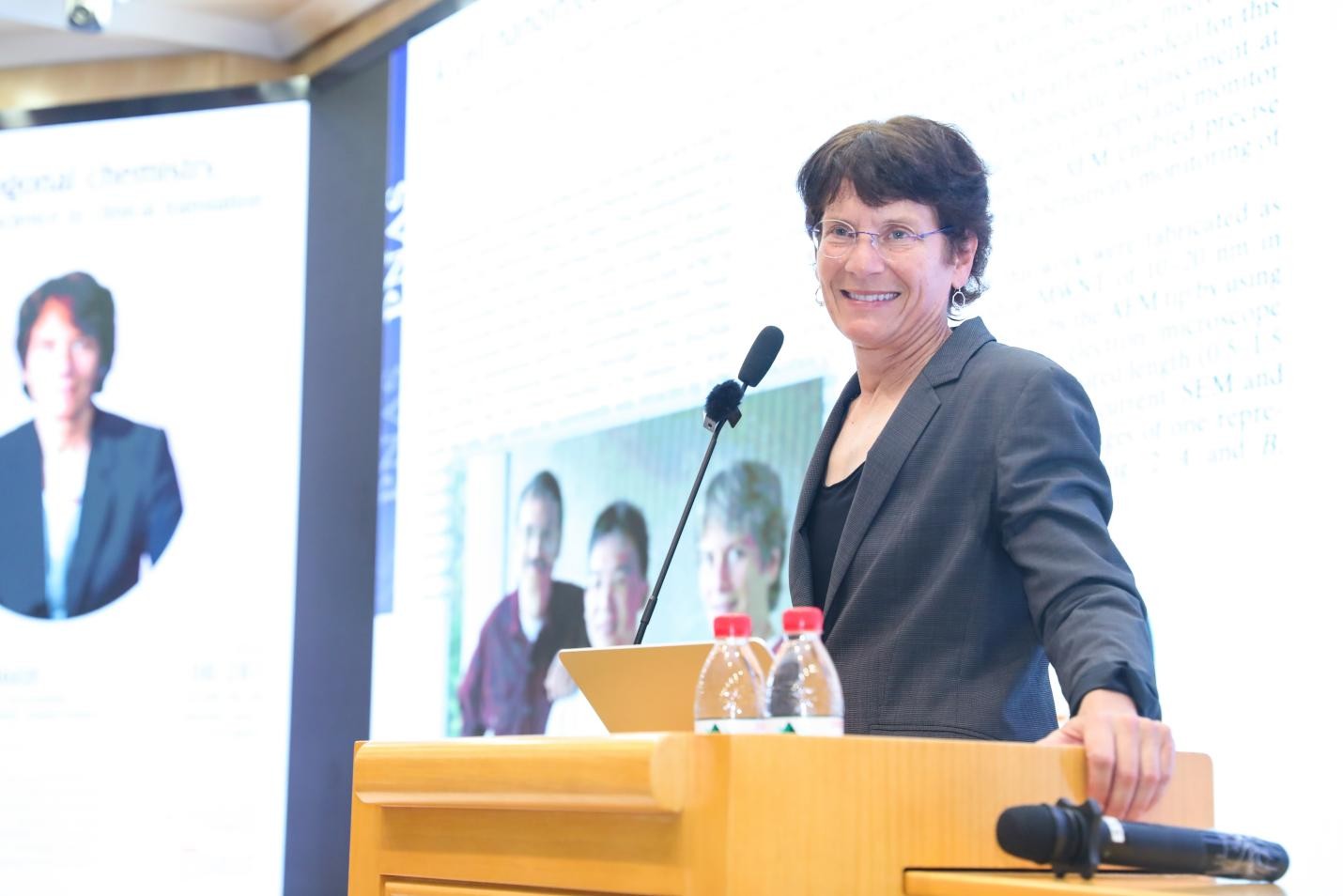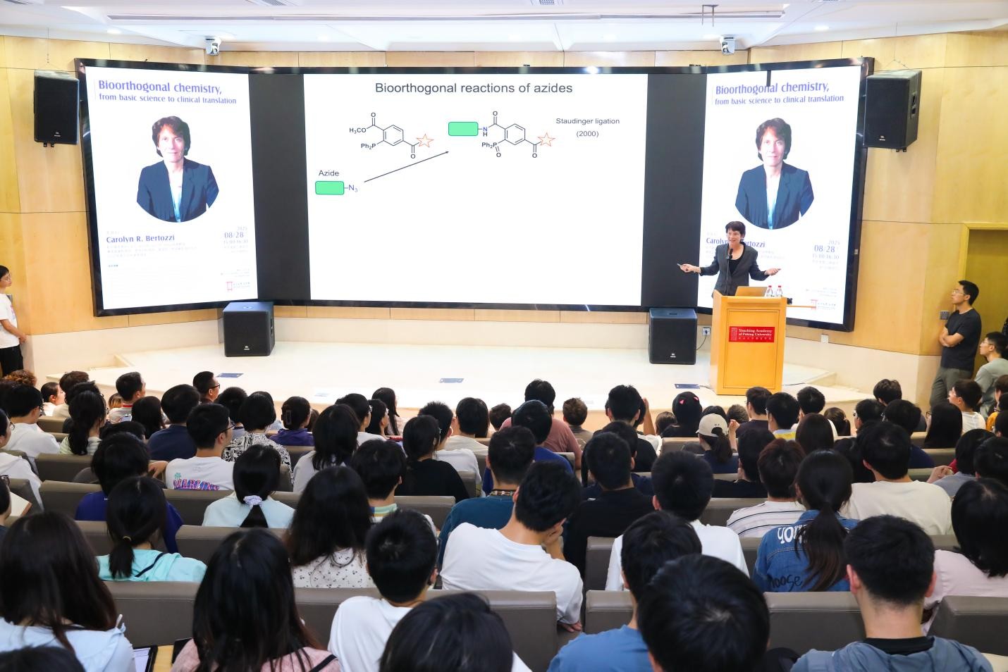 Held at the Underground Hall of No. 2 Gymnasium, Prof. Bertozzi drew a full audience as she retraced the origins of bioorthogonal chemistry – reactions designed to function inside living systems without interfering with natural processes.