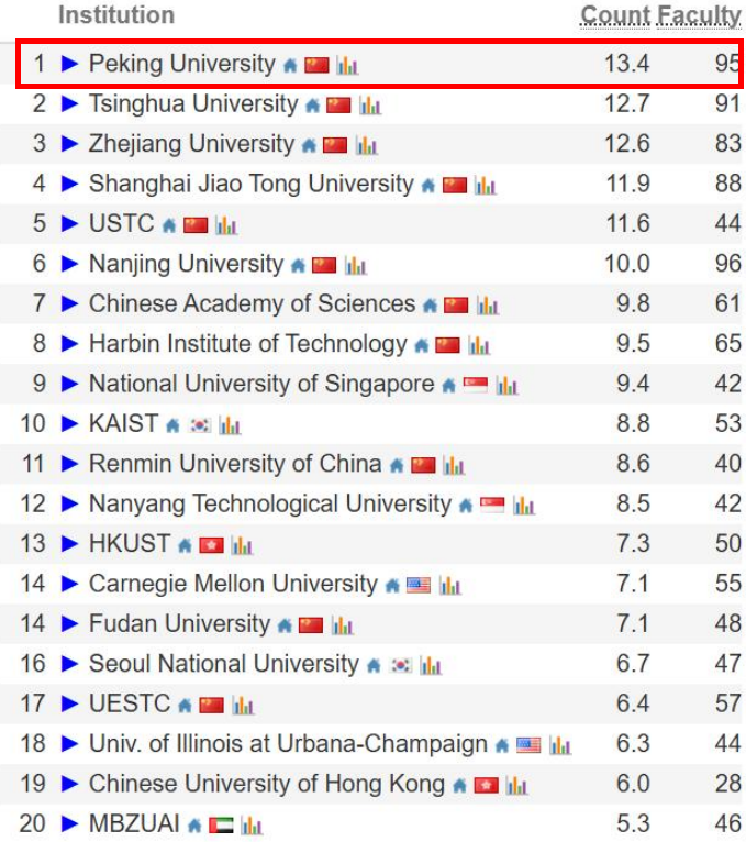 PKU’s rapid rise in AI power reflects strongly on its global pool of talent and innovative academic environment, which is also a testament to the institution’s relentless pursuit of excellence.