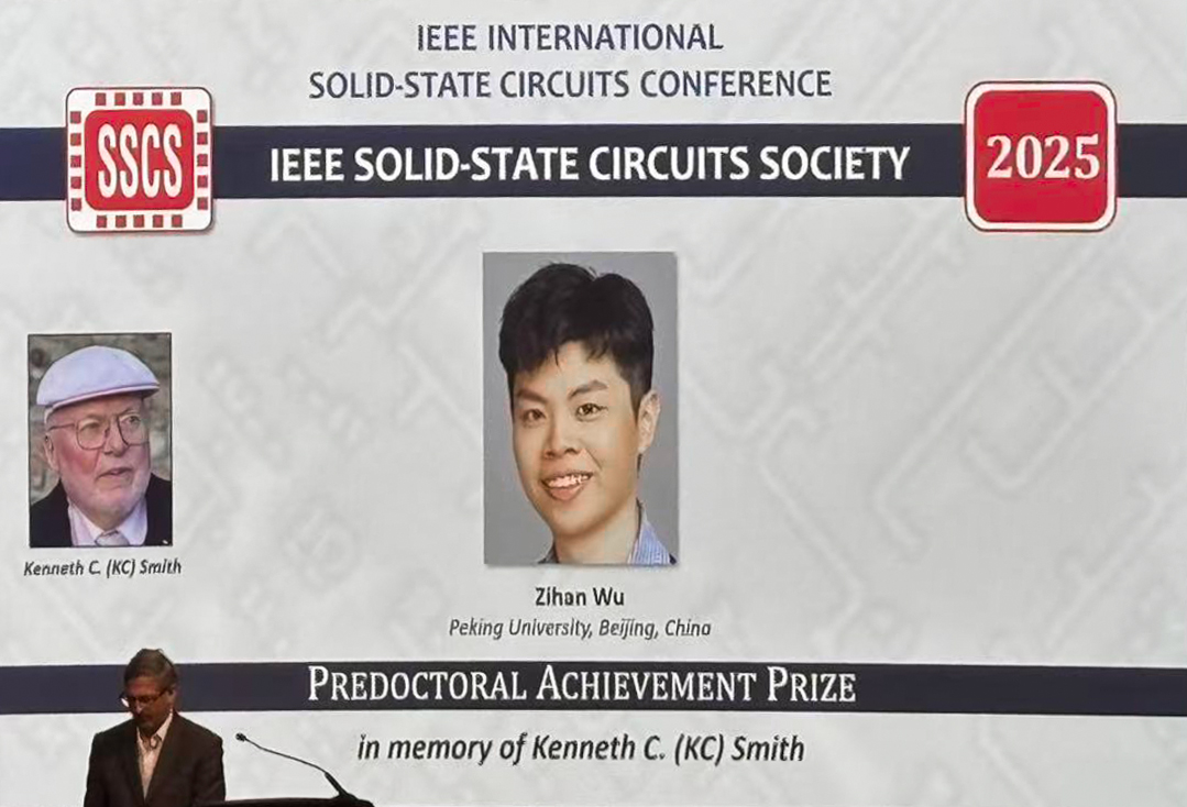 Peking University, March 10, 2026: At the 73rd IEEE International Solid-State Circuits Conference (ISSCC 2026), recently held in San Francisco, Wu Zihan, a doctoral student from the School of Integrated Circuits at Peking University, received the inaugural 2025 IEEE SSCS Predoctoral Achievement Prize, or the Kenneth C. (KC) Smith Award. The award recognizes his outstanding research contributions in in-memory computing, search technologies, and their applications in solving complex optimization problems.