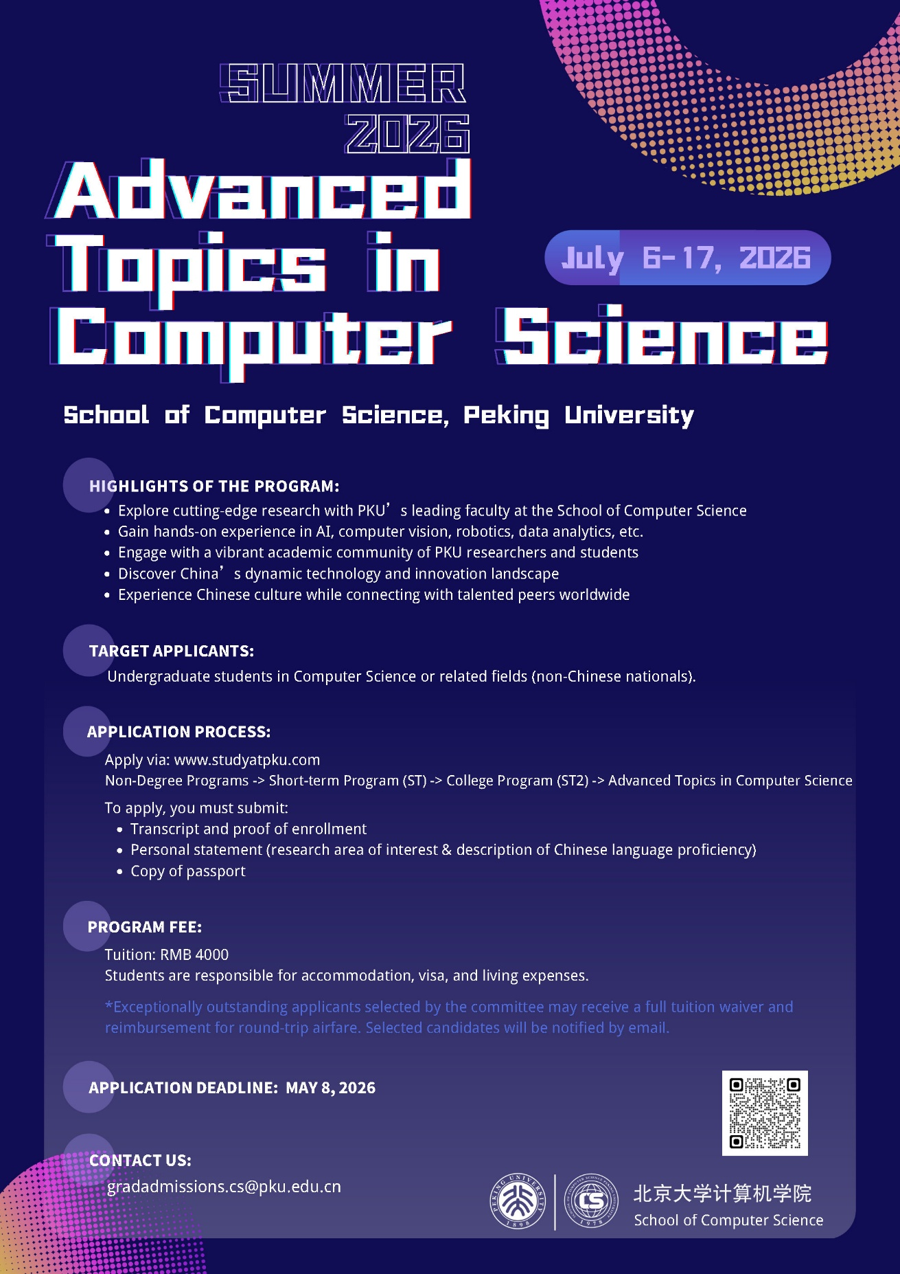 Email: gradadmissions.cs@pku.edu.cn