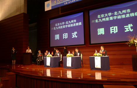 Peking University, Oct.26, 2011: School of Electronics Engineering and Computer Science, PKU signed agreement for research cooperation with Japan’s Kitakyushu, and Kitakyushu Foundation for the Advancement of Industry, Science and Technology (FAIS) on Oct.19. The signing ceremony was held in the conference hall of Kitakyushu Science and Research Park (KSRP) as a part of the 10th anniversary celebrations for KSRP.