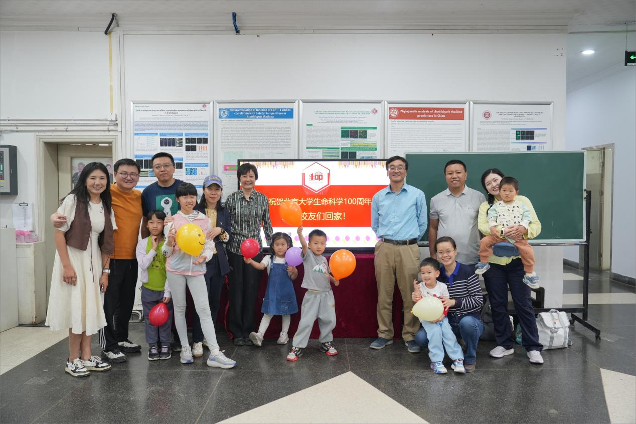 Qu and his graduated students during the centennial celebration of PKU School of Life Sciences.