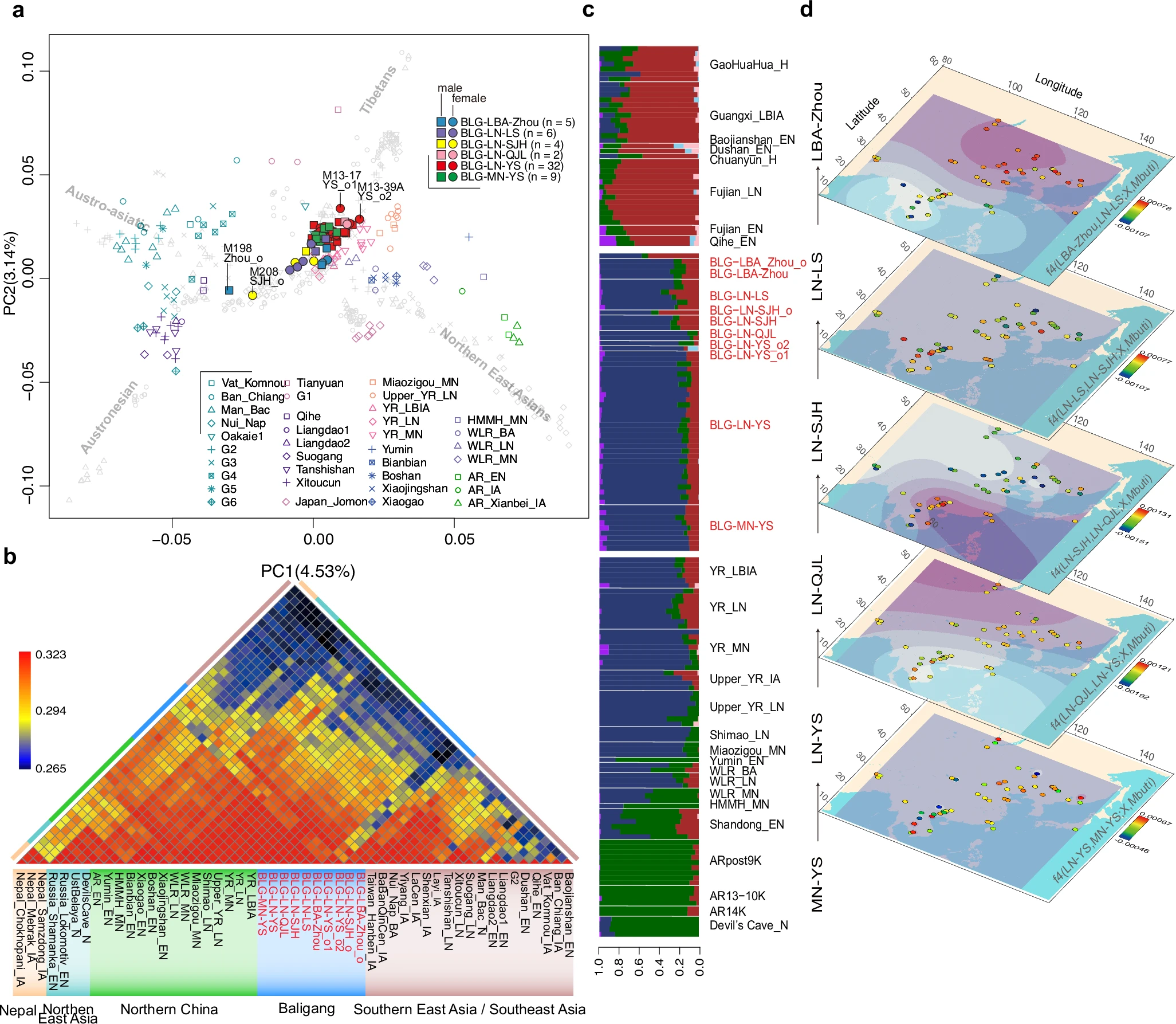 Fig. 2: Dynamic genetic structure of ancient Baligang populations.