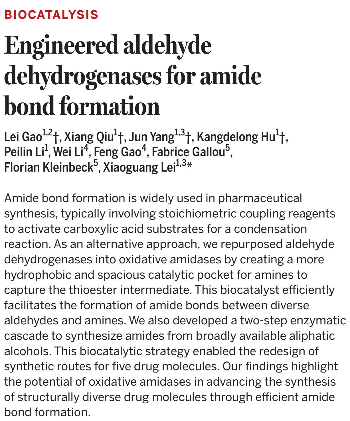 Science on January 29, 2026, under the title: "Engineered aldehyde dehydrogenases for amide bond formation."